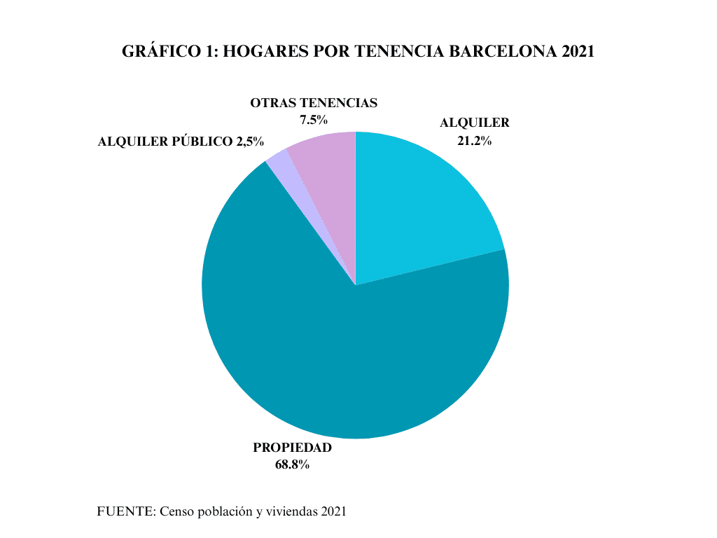 Segons el cens de 2021, la província de Barcelona comptava amb 2.197.827 llars: el 68,68% vivia en règim de propietat, un 7,5% es trobava sota altres formes de tinença (com cessions), el 21,2% llogava a preus de mercat, i un 2,5% es beneficiava de lloguers públics. Comparant aquestes dades amb les del 2011, podem obtenir una visió clara dels canvis ocorreguts durant la crisi.