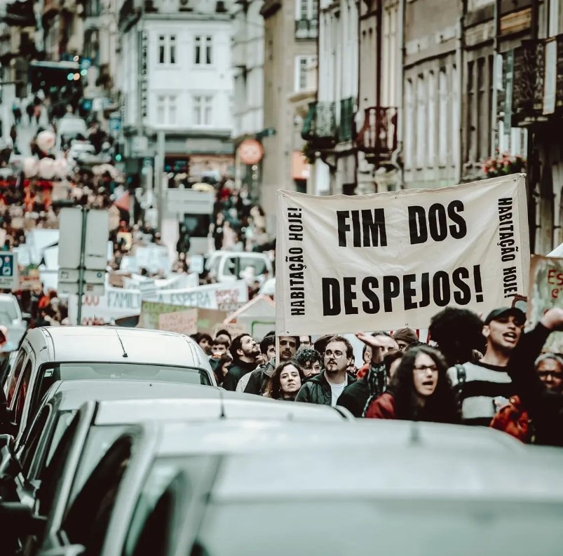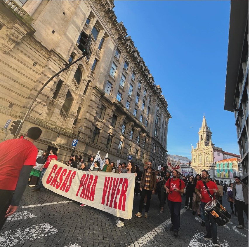 M: La idea va començar a sorgir prepandèmia. Hi va haver una manifestació de veïns del Barri da Ribeira, la zona històrica de la ciutat, prop del riu. Una dona estava a punt de ser desnonada d’un habitatge públic amb els seus fills; el pare d’aquesta dona tenia un contracte de lloguer amb l’Ajuntament de Porto i ella també hi vivia perquè el va cuidar fins que va morir. Aleshores va decidir quedar-s’hi a viure amb els fills i volien desnonar-la des de l’Ajuntament. Hi va haver una gran manifestació dels veïns del barri, que fins i tot va traslladar-se a les portes de l’Ajuntament durant un ple municipal demanant que no la desnonessin.