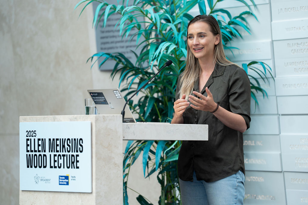 La conferència Ellen Meiksins Wood de 2025 va ser impartida per Grace Blakeley, il·lustrant per què el capitalisme neoliberal ha anul·lat la democràcia i per què hem d'organitzar-nos per recuperar el poder democràtic per a la classe treballadora.